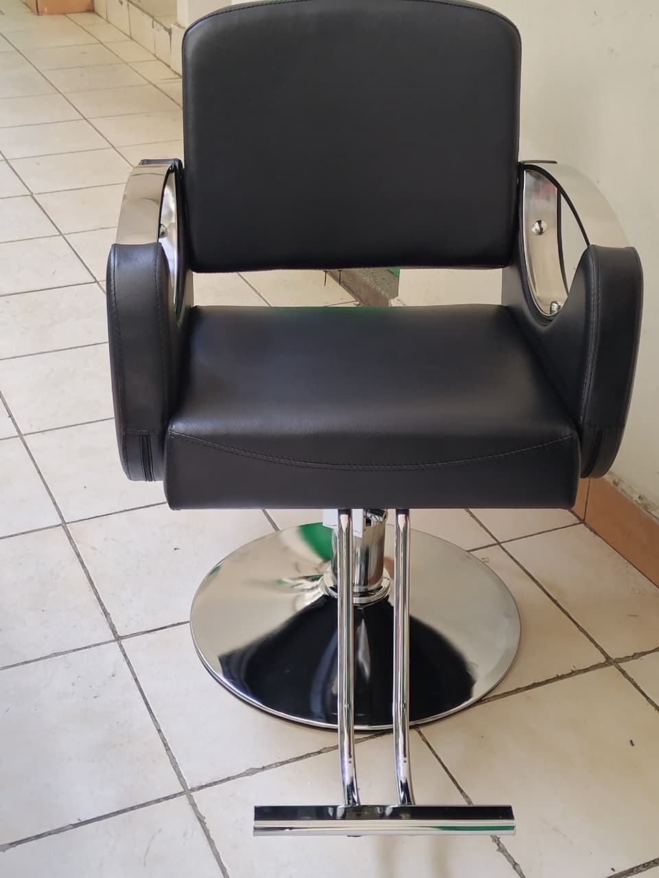 Wrapped in durable, easy-to-clean leather-like upholstery, the seat combines functionality with style. The reclining mechanism allows clients to relax fully, while the chrome-plated base ensures stability and strength. Additional features like padded armrests and a solid footrest enhance the client’s comfort throughout their session.